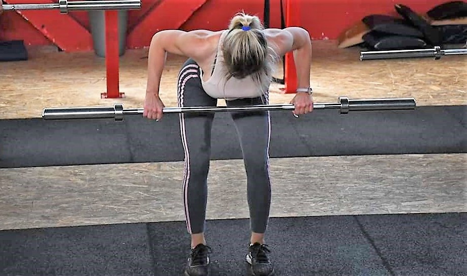 Stopala postaviti u širini kukova i jednako raspodijeliti tjelesnu težinu na obje noge. Šipku primiti rukama u širini ramena. Koljena blago savinuti. Pretkloniti se ( sagnuti) u kukovima dok trup nije između paralele s podom i 45 stupnjeva. Početna pozicija je kada su ruke opružene. Pokret izvoditi stiskanjem lopatica i savijanjem laktova dok šipku privlačimo prema trbuhu. Trup treba ostati u istom položaju što znači ne se uspravljati za vrijeme povlačenja. Kada je šipka kod trbuha, stisnuti dodatno leđa i lopatice i vratiti se u početni položaj.
